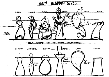 The design for most characters was based on the work of caricaturist Al Hirschfeld,[41] which production designer Richard Vander Wende also considered appropriate to the theme, due to similarities to the flowing and swooping lines found in Arabic calligraphy.[32] Jafar's design was not based on Hirschfeld's work because Jafar's supervising animator, Andreas Deja, wanted the character to be contrasting.[42] Each character was animated alone, with the animators consulting each other to make scenes with interrelating characters. Since Aladdin's animator Glen Keane was working in the California branch of Walt Disney Feature Animation, and Jasmine's animator Mark Henn was in the Florida one at Disney-MGM Studios, they had to frequently phone, fax or send designs and discs to each other.[32] The animators filmed monkeys at the San Francisco Zoo to study their movements for Abu's character.[16] Iago's supervising animator Will Finn tried to incorporate some aspects of Gottfried's appearance into the parrot's design, especially his semi-closed eyes and the always-appearing teeth.[16] Some aspects of the Sultan were inspired by the Wizard of Oz, to create a bumbling authority figure.[16] Andreas Deja, Jafar's supervising animator, tried to incorporate Jonathan Freeman's facial expressions and gesturing into the character.[41] Animator Randy Cartwright described working on the Magic Carpet as challenging, since it is only a rectangular shape, that expresses itself through pantomime—"It's sort of like acting by origami."[32] Cartwright kept folding a piece of cloth while animating to see how to position the Carpet.[32] After the character animation was done, the carpet's surface design was applied digitally.[41]