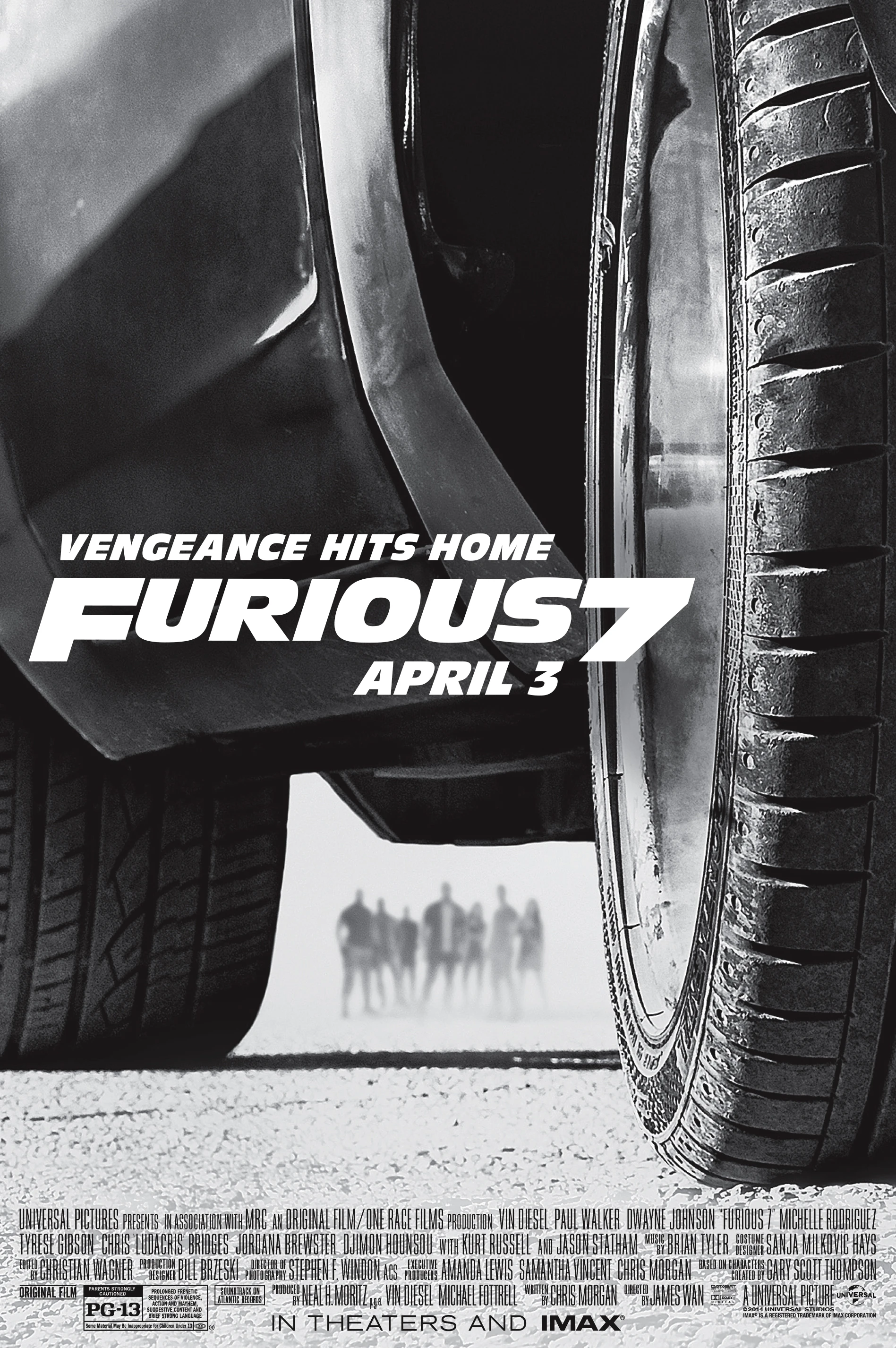 - Universal Pictures. Universal Pictures 'Furious 7' Starring Vin Diesel, Paul Walker, & Dwayne Johnson In Theaters April 3, 2015.