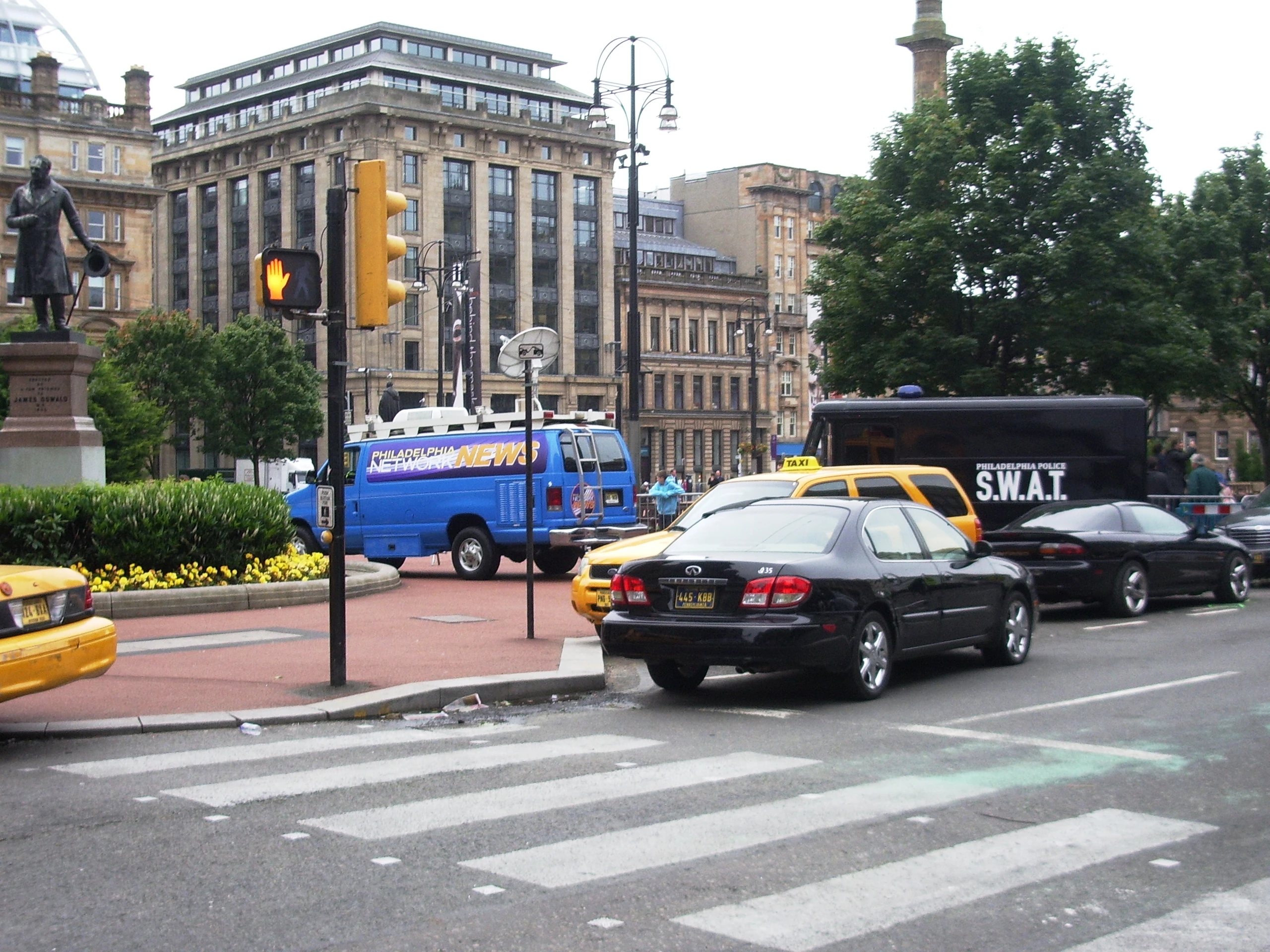 Filming in George Square, Glasgow, in August 2011